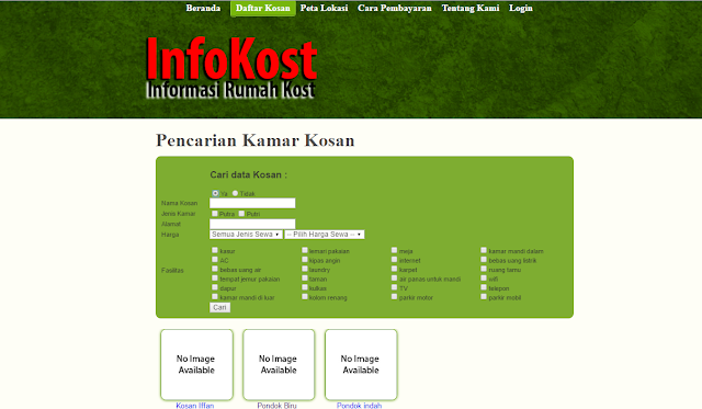 Setelah mengupdate Aplikasi Farmers Berbasis Web , kali ini saya akan membagikan program mengenai Aplikasi Informasi Kost Dengan Internet dapat dilihat selaku berikut :